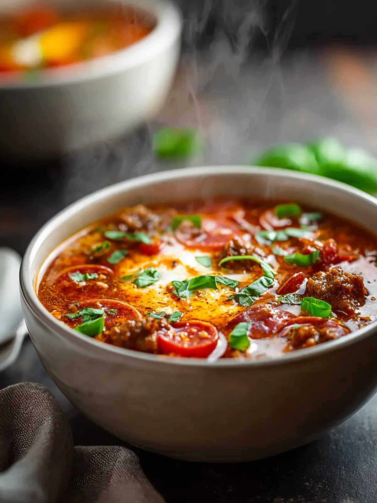 This hearty Pizza Soup is packed with flavor and perfect for a cozy meal.