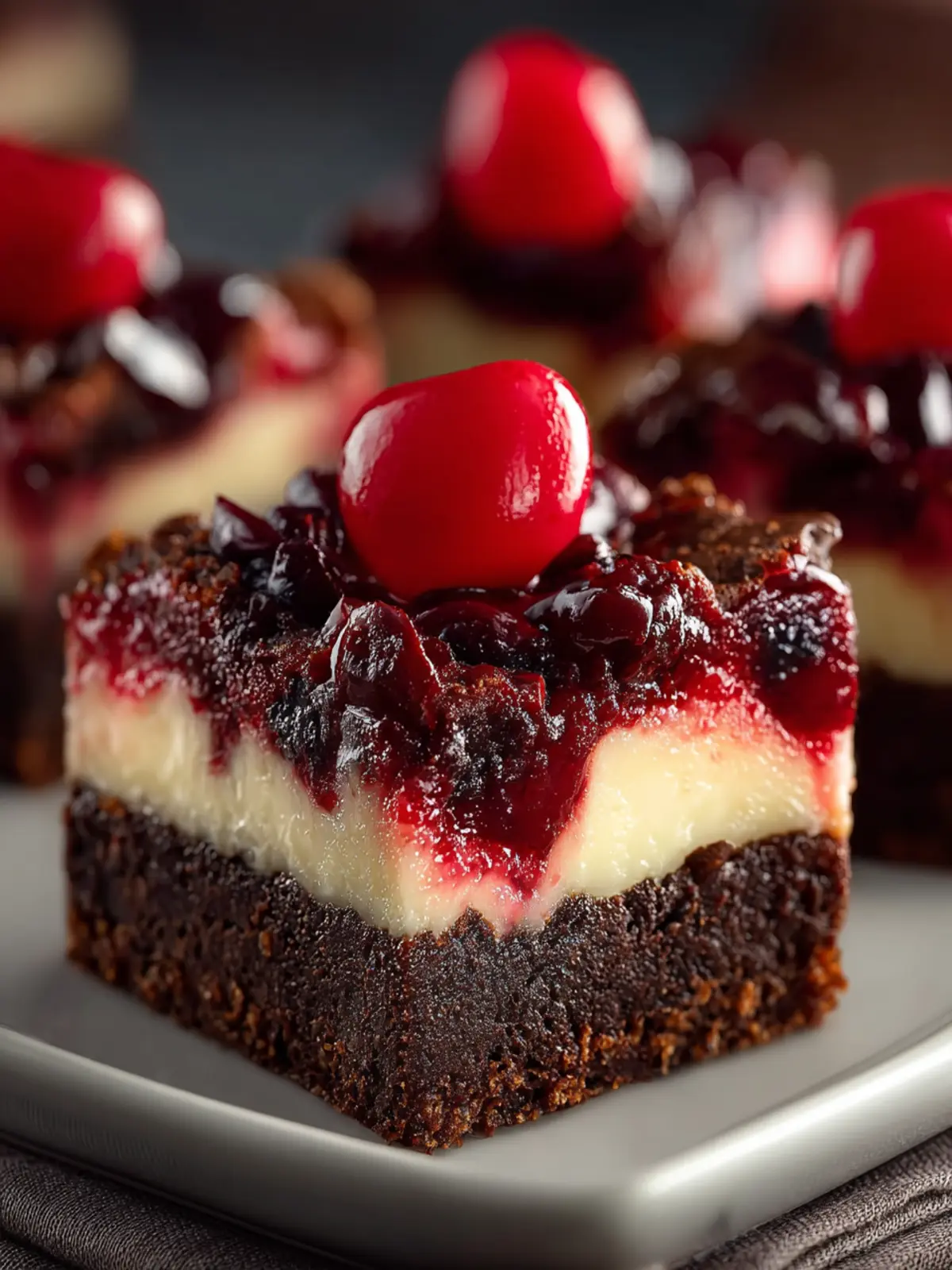 You might be wondering how these bars can elevate your dessert game. Picture a cozy evening with friends, where everyone gathers around a plate of these colorful, decadent bars. They’re not only delicious but visually appealing, leaving everyone ready for the first bite. The cherries create a pop of color, while the layers invite curiosity with each slice.