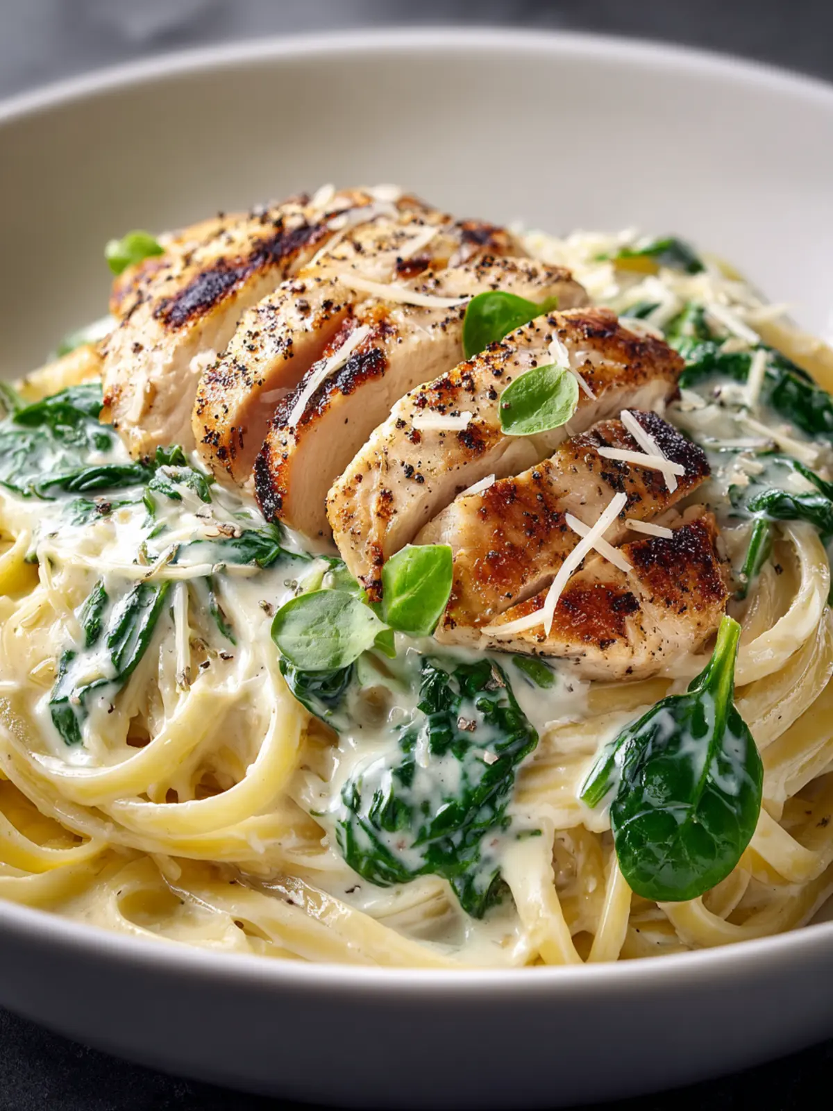 Chicken: For an irresistible Chicken Spinach Alfredo, using succulent chicken breast is key. It’s lean, cooks quickly, and absorbs the flavors of the dish beautifully. A quick sear adds a lovely golden exterior, which contrasts wonderfully with the creamy sauce.