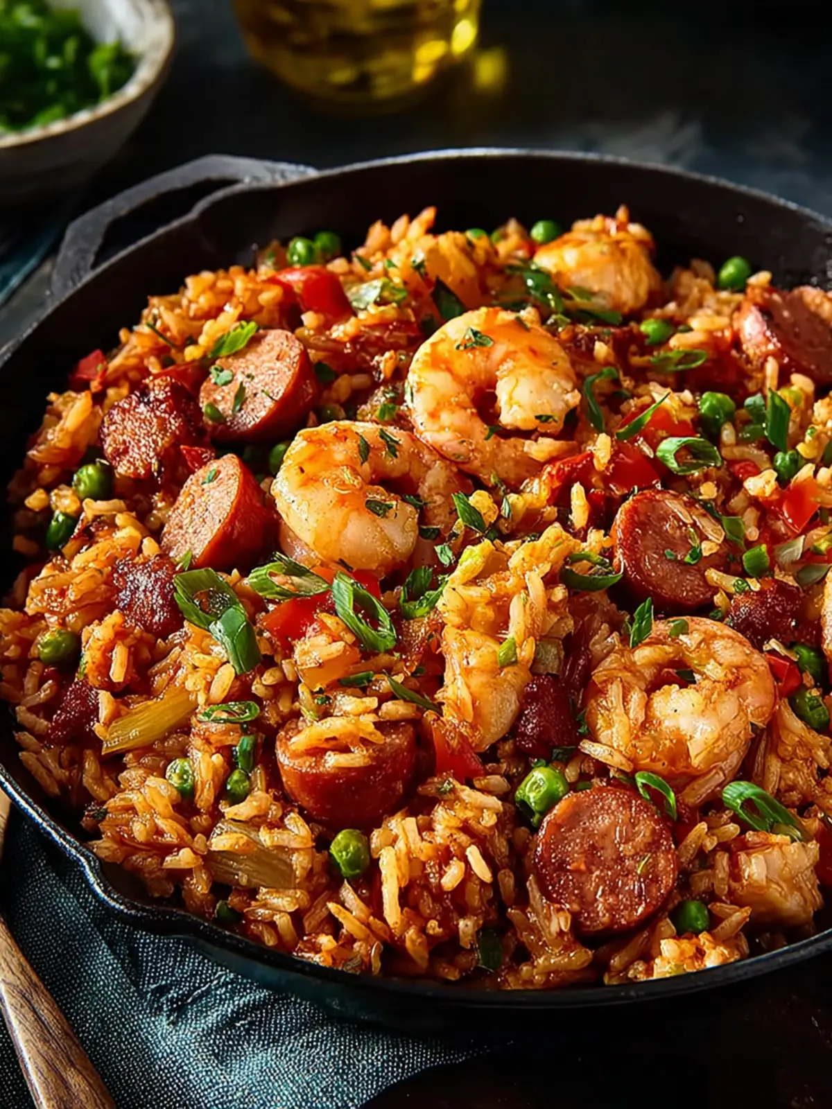 A flavorful Cajun-inspired dish with shrimp, andouille sausage, and rice.