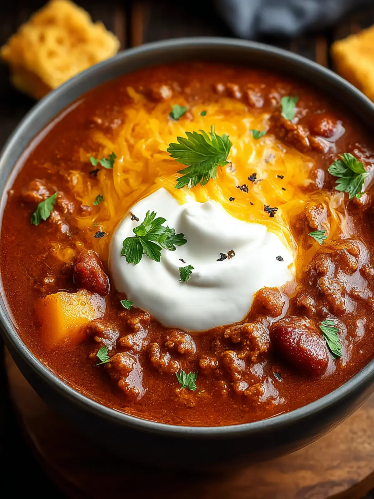 Serve your chili with crusty bread or over a bed of rice to soak up all that rich sauce. A dollop of sour cream or a sprinkle of cheese adds a creamy contrast that complements the spices beautifully.