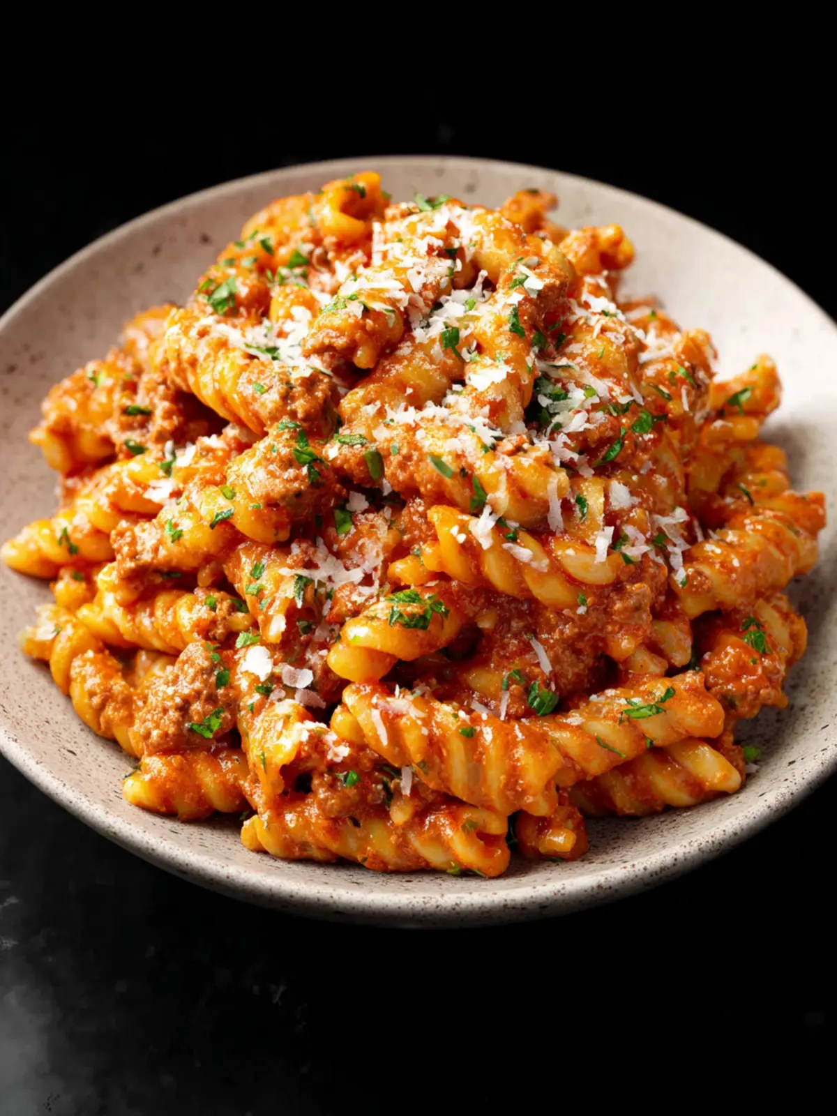 As a finishing touch, freshly grated Parmesan cheese takes this pasta to the next level. Its salty, nutty flavor beautifully complements the richness of the dish, making it a must-try before serving.