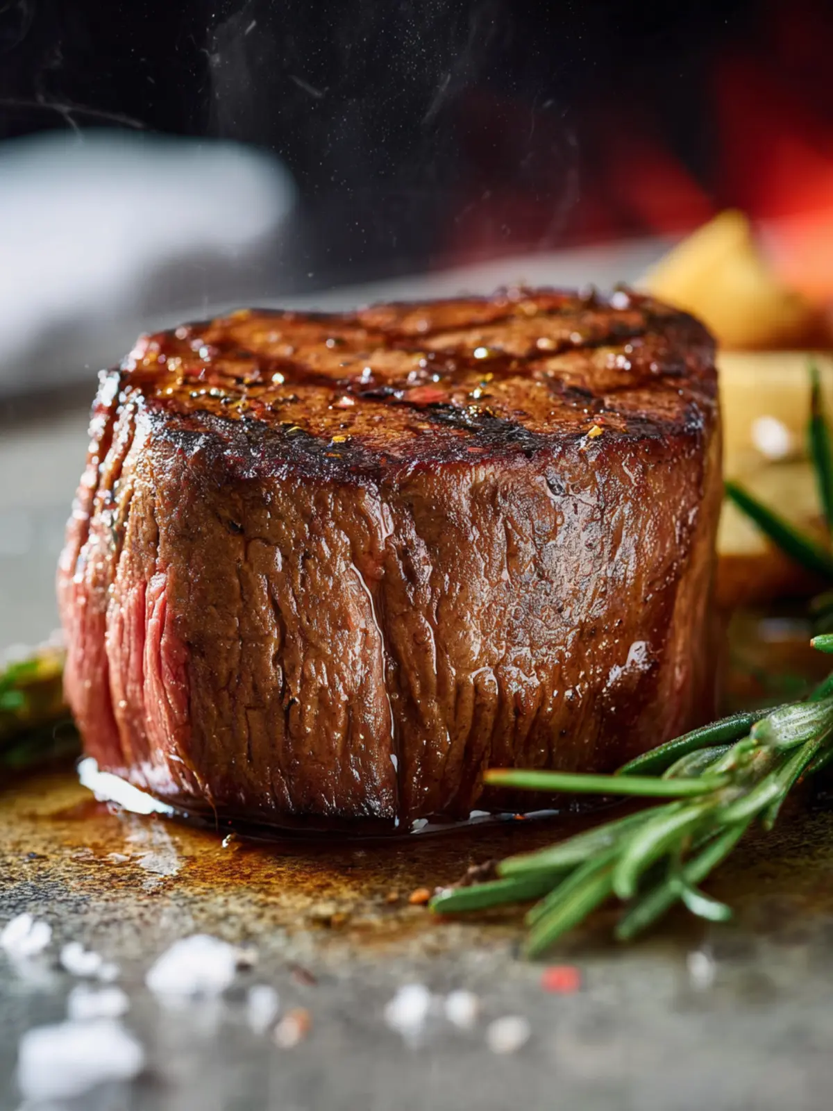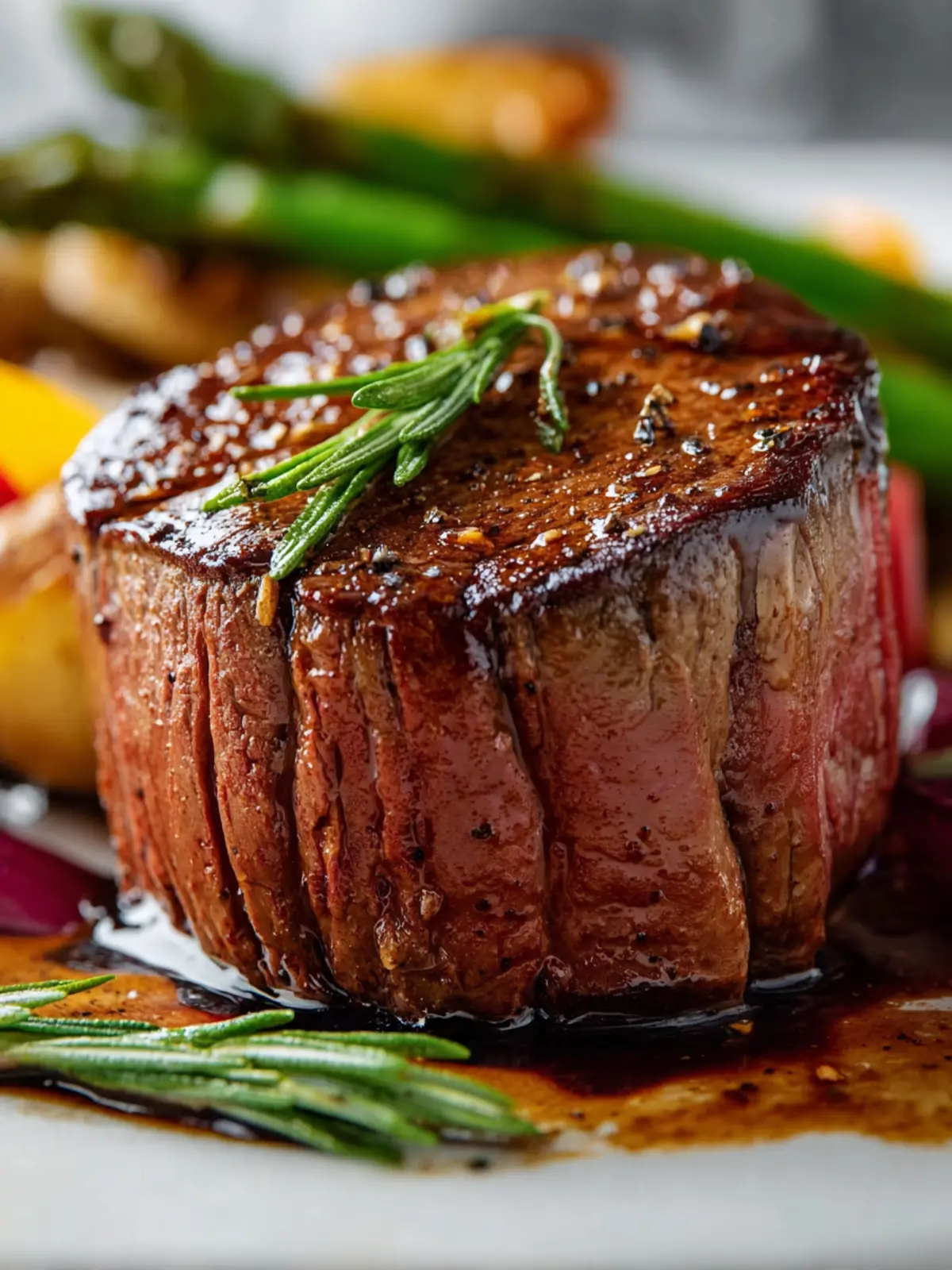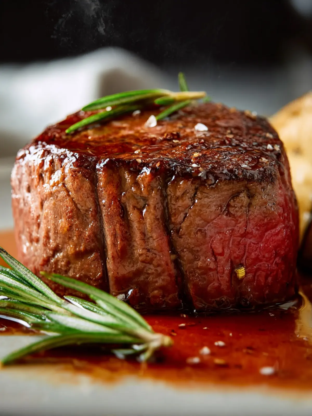 Finish off with a sprig of fresh rosemary or thyme to add an aromatic touch and visual appeal. Make your filet mignon not just a dish, but a feast for the senses!