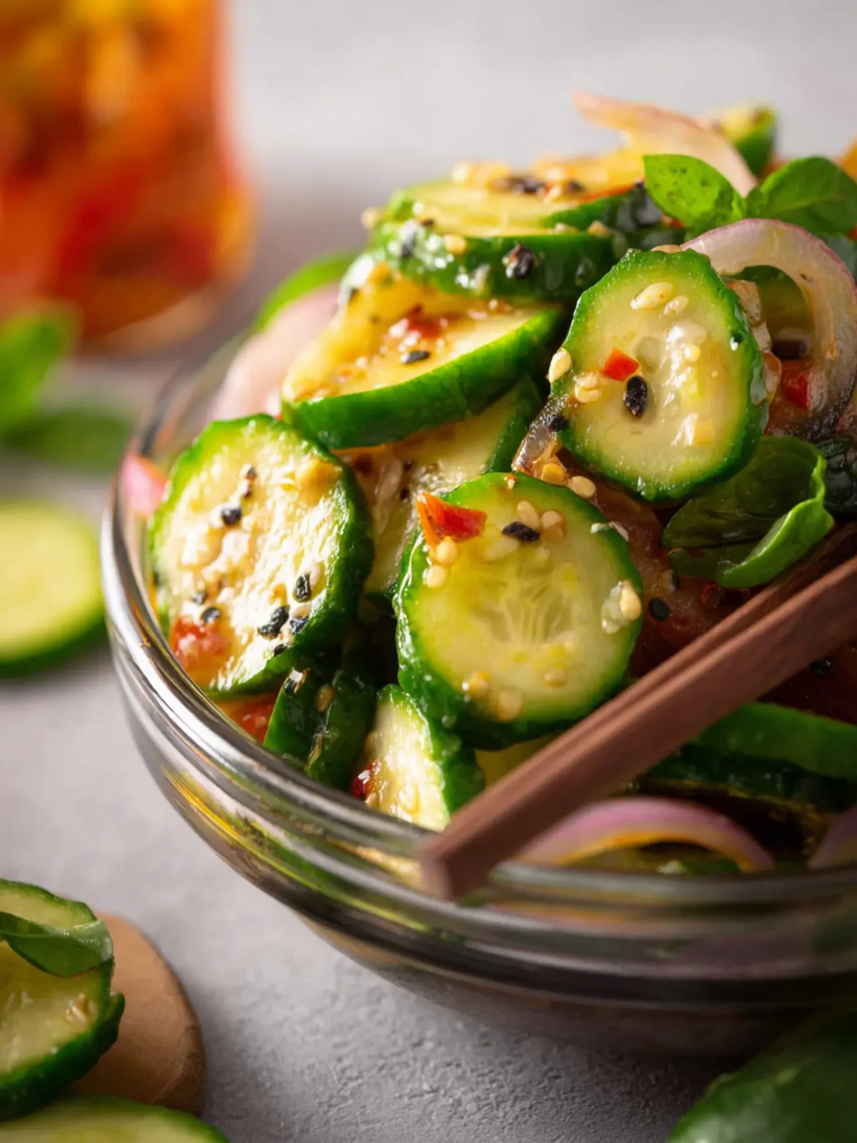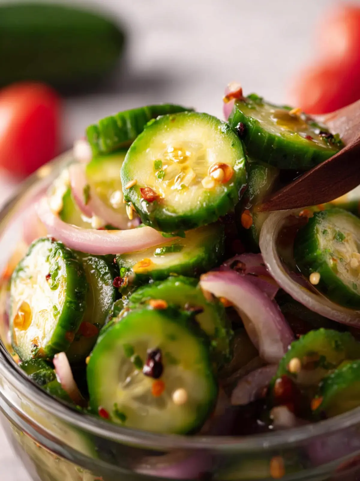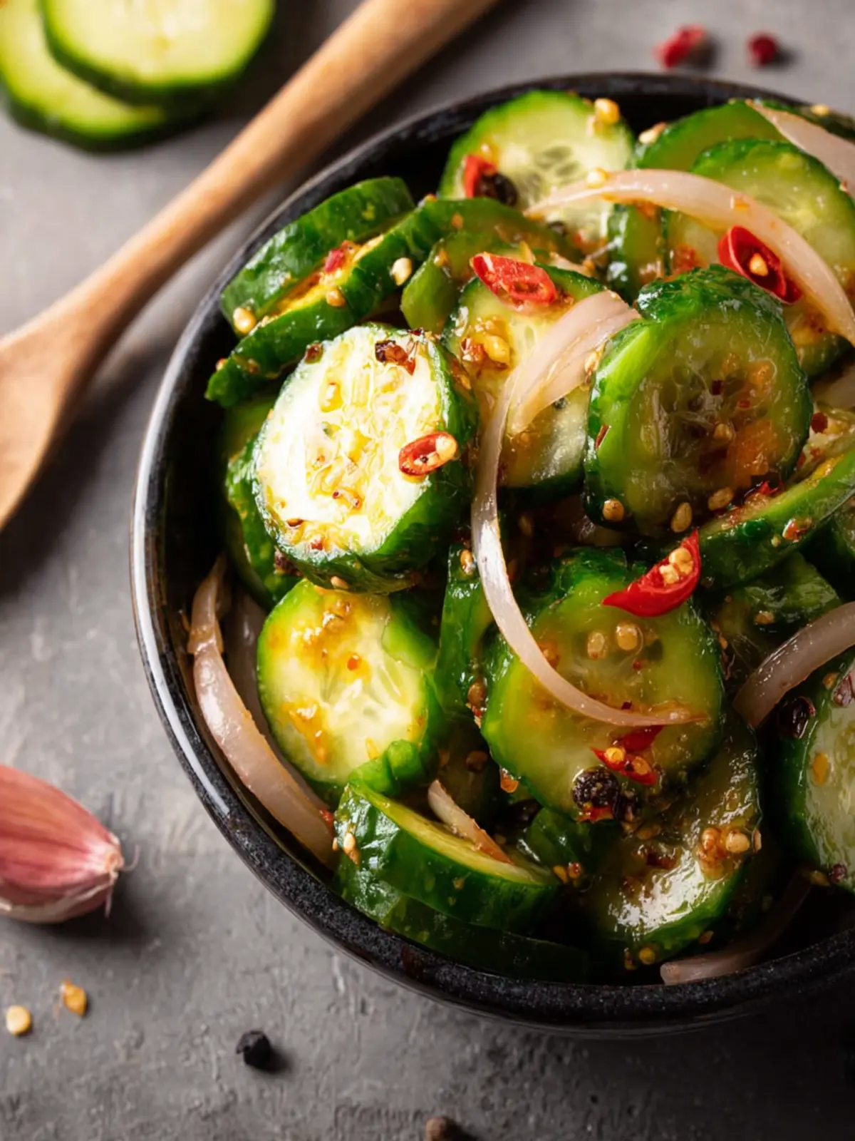 A refreshing cucumber salad with a spicy twist.
