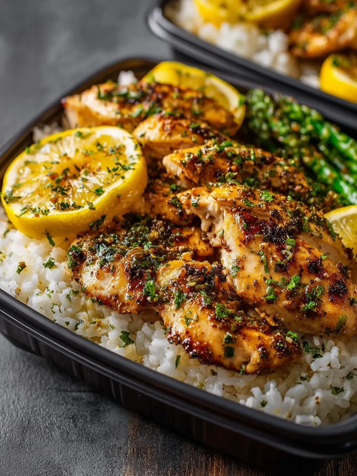 Healthy Lemon Garlic Chicken Meal Prep Bowls
