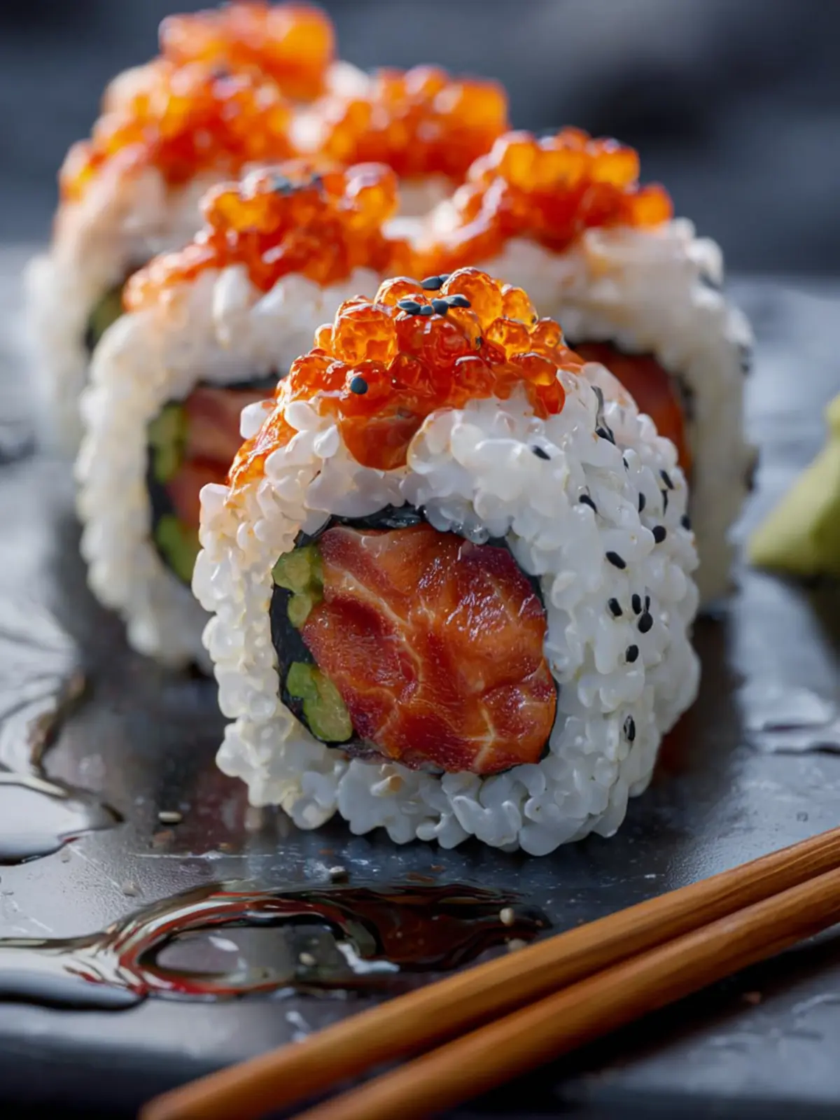 Sushi Rolls with Tuna and Capelin Roe